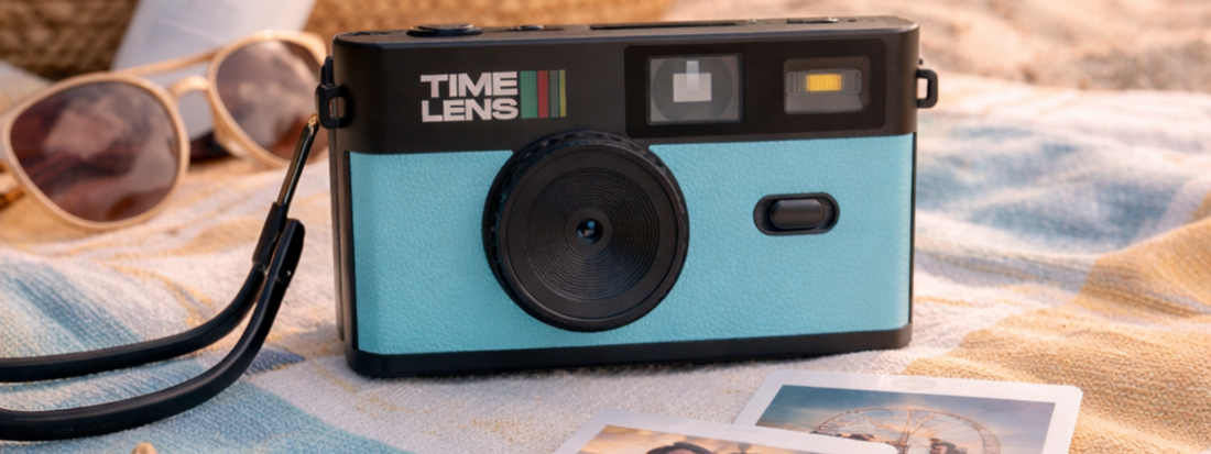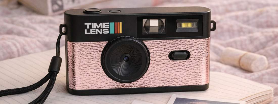 De TimeLens retro digitale camera ziet eruit als een wegwerpcamera van vroeger, maar werkt volledig digitaal. Geen scherm, geen apps en geen meldingen, gewoon richten en klikken. Dat maakt hem anders dan een smartphone en net daarom spreken zoveel mensen hem aan.