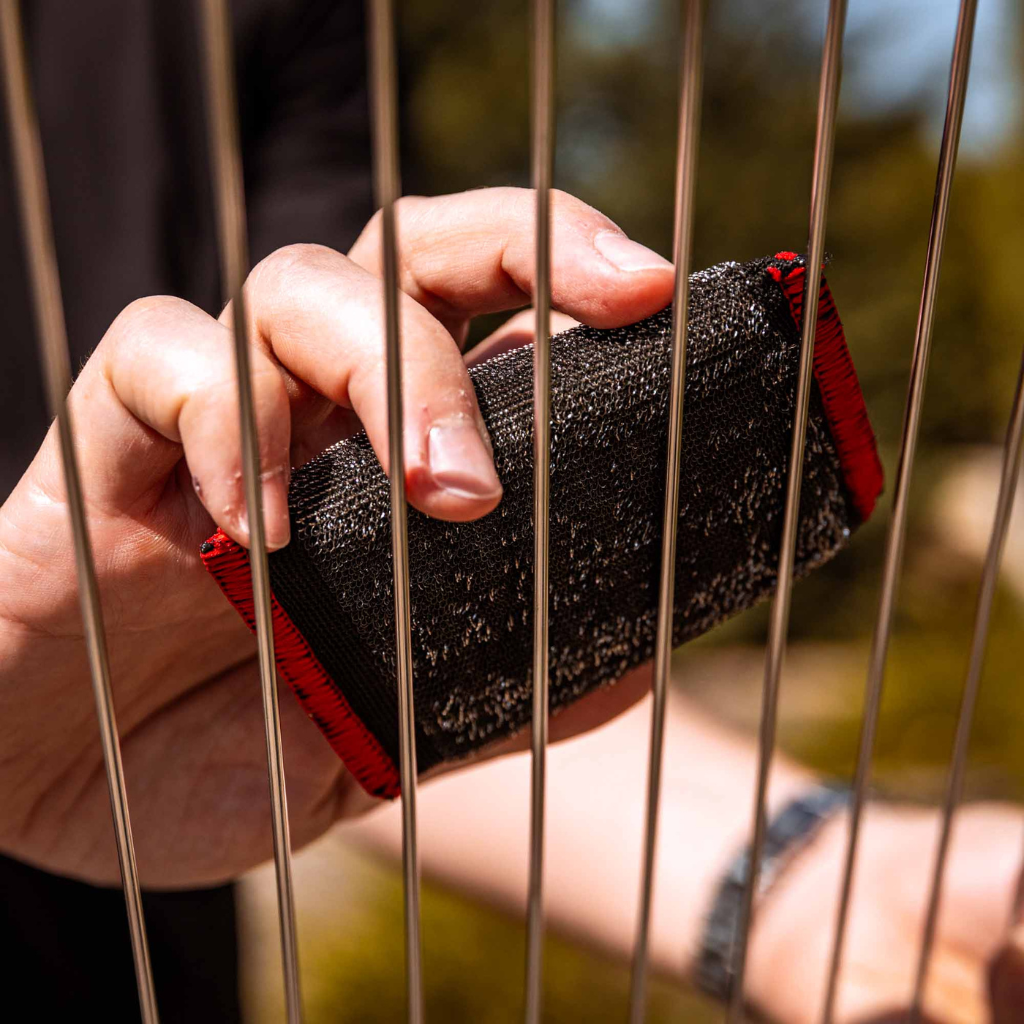 Gebruik de spons enkel op stevige oppervlakken zoals grillroosters. Niet geschikt voor gecoate of gevoelige materialen. Reinig na gebruik en laat drogen voor langere levensduur.