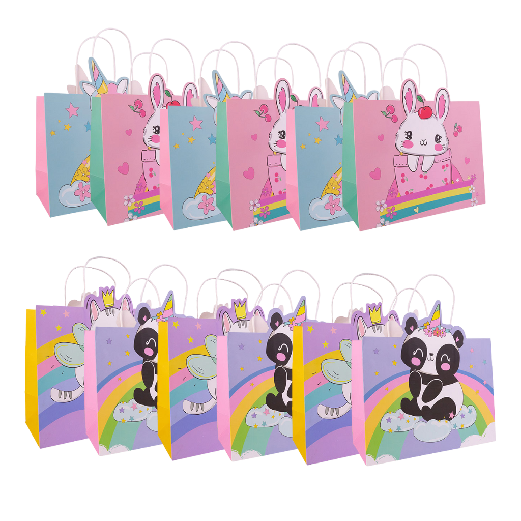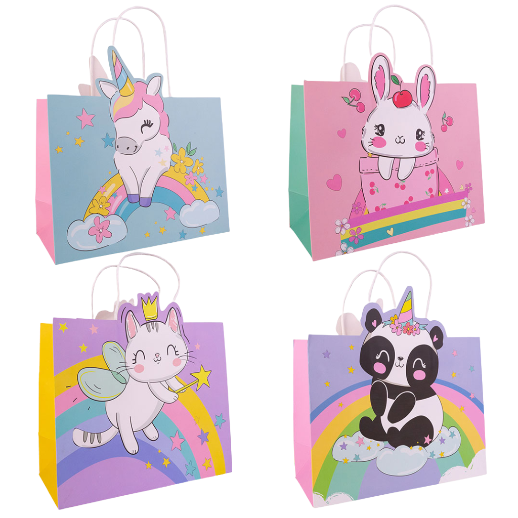 Dit schattige diertjes cadeauzakje in S-formaat zorgt voor een magische presentatie van je geschenken. Met 4 verschillende kleurrijke designs is het een vrolijke manier om cadeautjes te verpakken. Dankzij het stevige papier blijven je geschenken mooi verpakt en maak je elk cadeau extra speciaal.