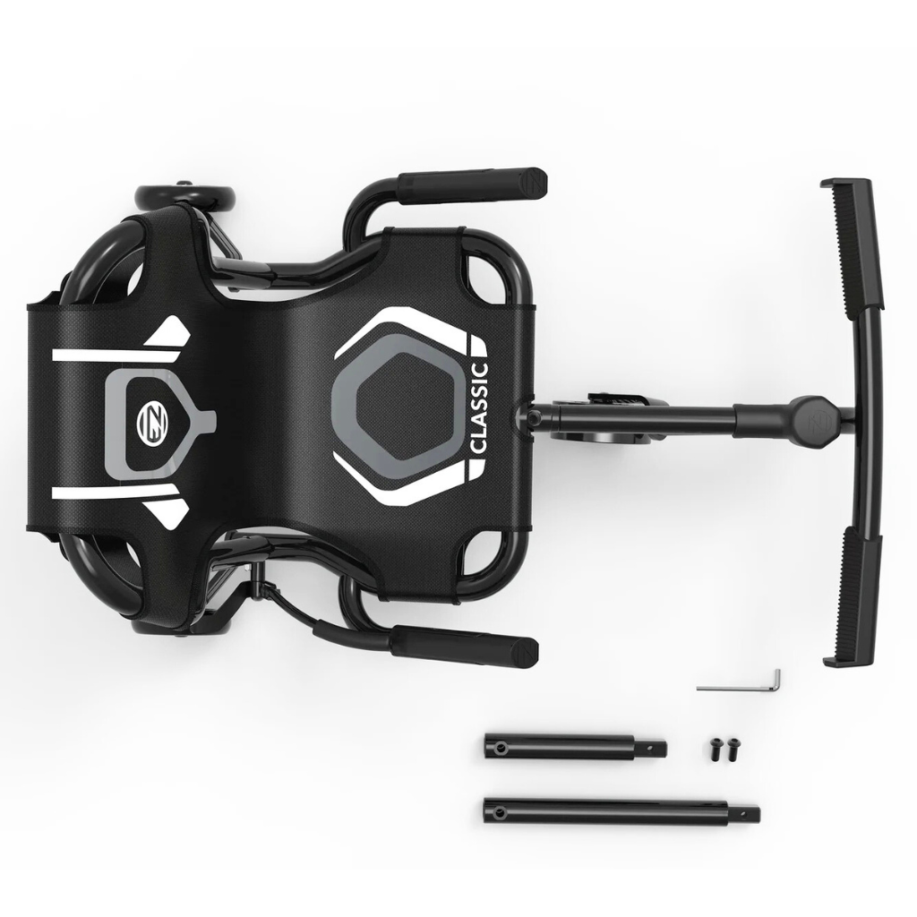 Het frame is gemaakt van stevig staal en kan worden aangepast met twee verlengstukken. Hierdoor kan de lengte worden ingesteld van ongeveer 66 cm tot 107 cm, geschikt voor kinderen vanaf ongeveer 95 cm lichaamslengte.