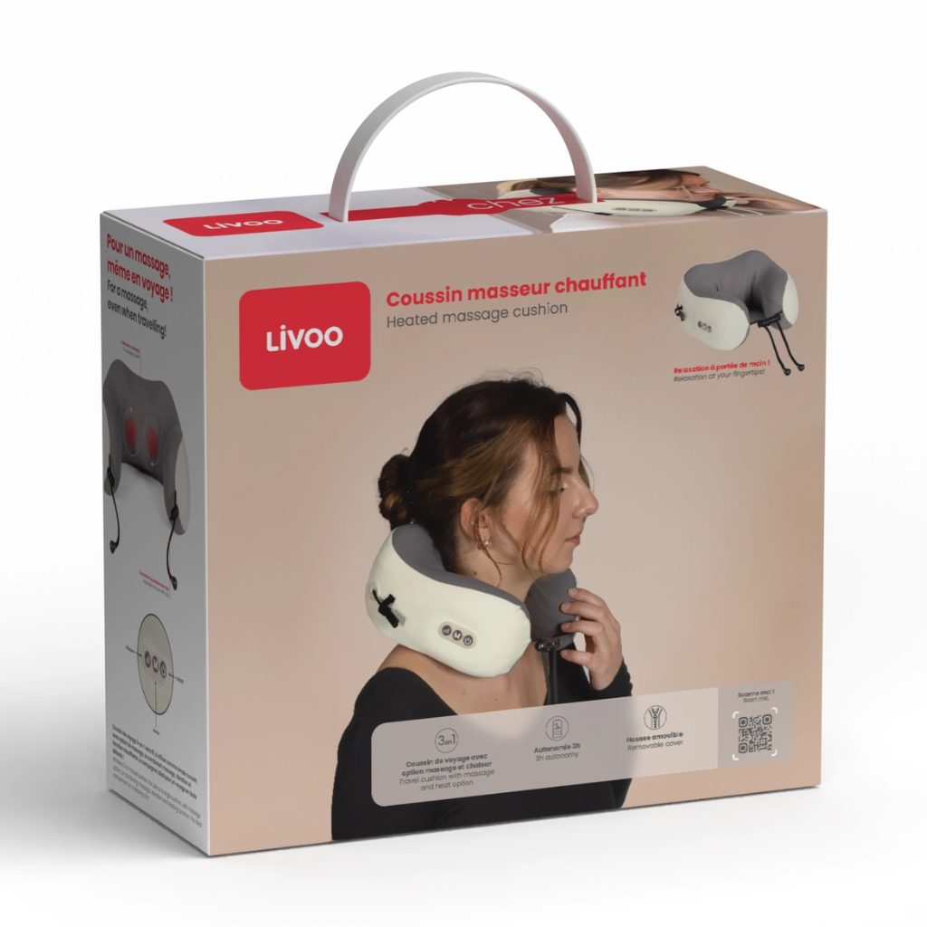 Het kussen beschikt over 2 massagekoppen en verschillende standen, zodat je zelf kiest wat het beste voelt. Je kan kiezen voor enkel massage of een combinatie met vibratie en warmte voor extra ontspanning.