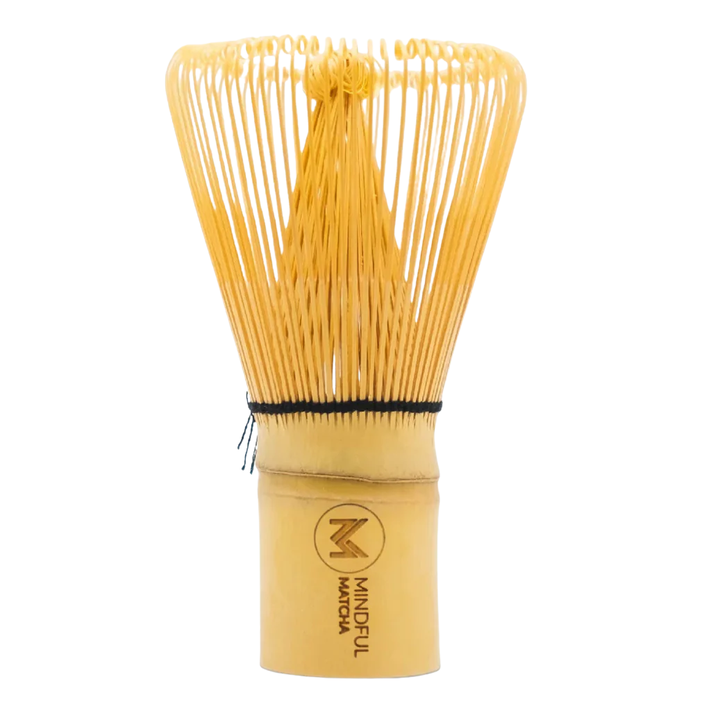De bijgeleverde bamboe whisk is essentieel om je matcha goed op te kloppen. Kies uit de premium variant met 70 borstelharen voor een luchtige schuim of de regular met 100 borstelharen voor een vollere textuur. Beide zijn duurzaam, herbruikbaar en eenvoudig schoon te maken.