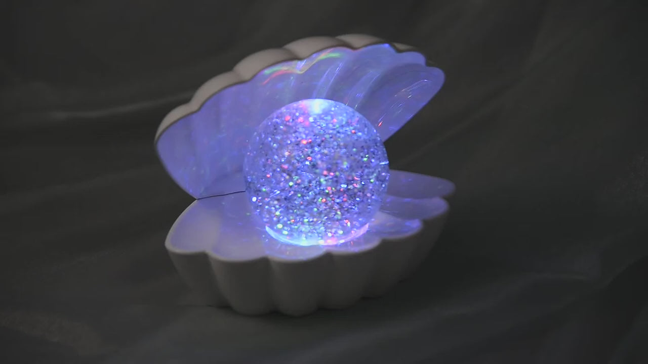 Deze schelpvormige lamp met parel geeft je interieur een vleugje magie en elegantie. Met zijn betoverende design en automatische kleurwissel-LED zorgt deze lamp voor een rustgevende sfeer in elke kamer.