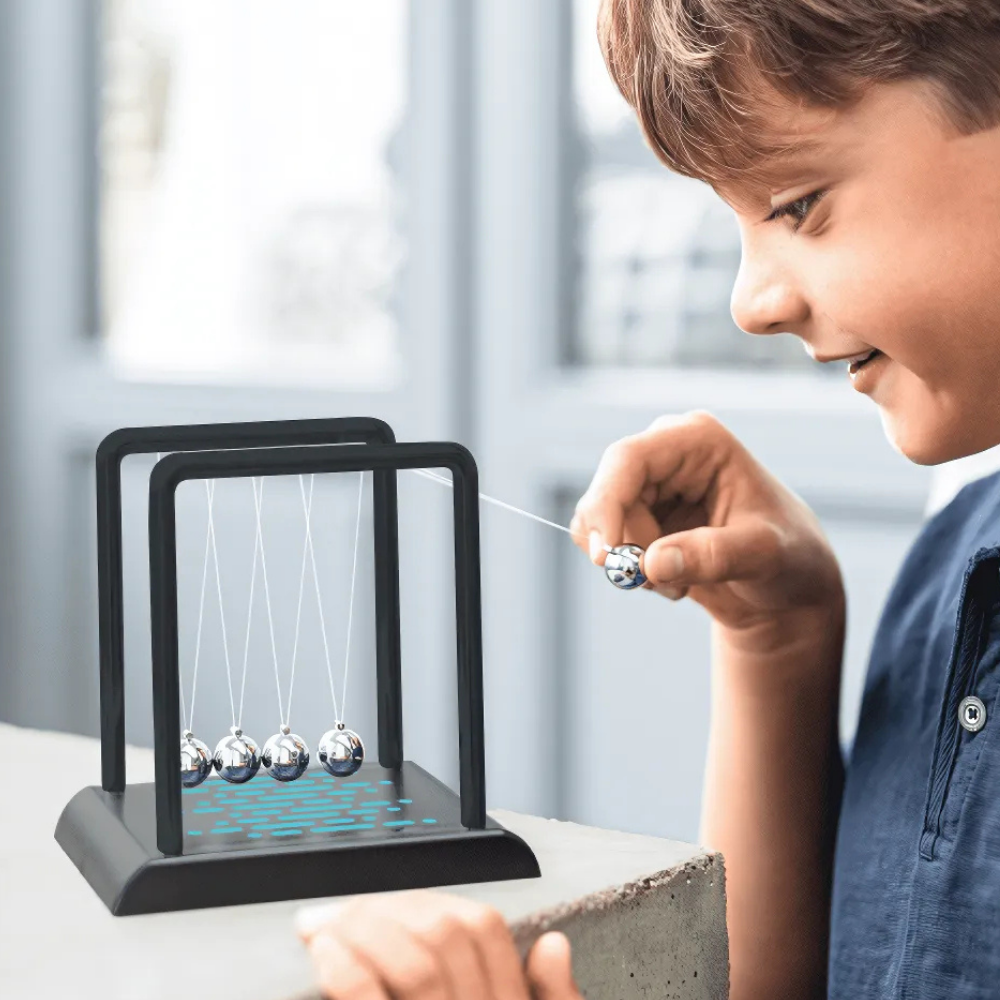 Dit retro balansspel laat kinderen experimenteren met beweging, energie en kracht. Het gekletter van de stalen kogels werkt rustgevend en blijft keer op keer boeien. De pendel is gemaakt van kunststof met stevige metalen kogels en heeft een formaat van 10,5 x 11 x 9 cm. Inclusief Nederlandstalige uitleg en een boekje in 5 talen, waardoor dit niet alleen een leuk speeltje is, maar ook een leerzaam experiment voor kinderen van 6 tot 12 jaar.