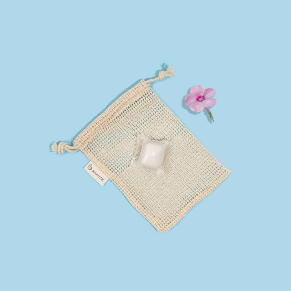 Bovendien is het netje veelzijdig inzetbaar. Gebruik het met geurboosters voor een frisse geur door je hele was, of verzamel de laatste stukjes van je douchebar om ze volledig op te gebruiken. Het duurzame, biologisch katoenen materiaal is zacht maar stevig en gaat lang mee, waardoor het een praktische en bewuste keuze is.